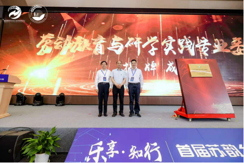 江苏省教育学会会长朱卫国、江苏省休闲旅游农业协会会长王冬宝、江苏省人大常委会农业和农村工作委员会原主任吴沛良共同为“劳动教育与研学实践专业委员会”揭牌。